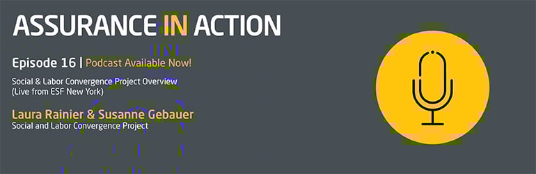 This week's episode of Assurance in Action was recorded at Ethical Sourcing Forum in New York City. Speakers Laura Rainier and Susanne Gebauer discuss their organization, the Social and Labor Convergence Project. During this presentation, Laura and Susanne discuss the drivers and mission of the SLCP and how the organization benefits the industry. To learn more about the SLCP please visit, slconvergence.org.